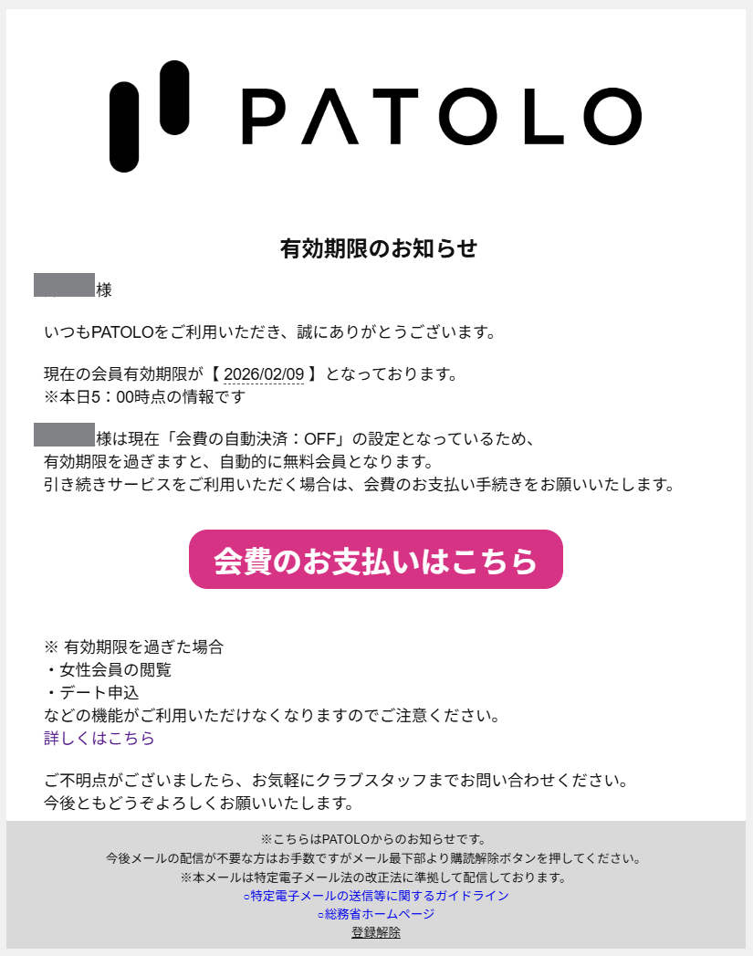 会員有効期限が切れる前に通知はありますか?