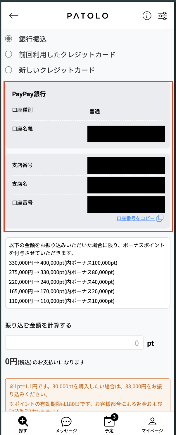 こちら以外の金額をお振込いただいた場合、ボーナスポイントは付きませんのでご注意ください。