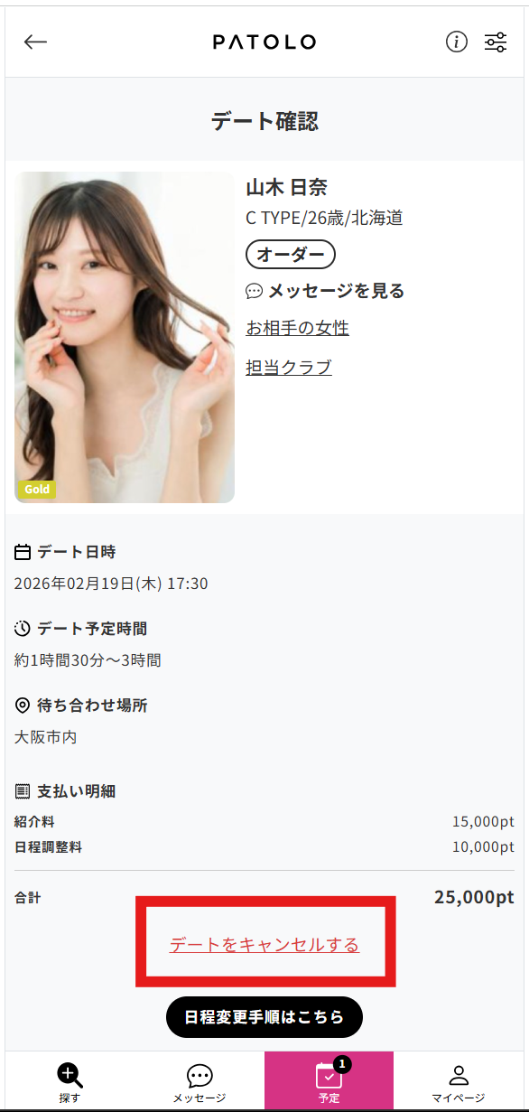 下の赤文字「デートをキャンセルする」を押します。